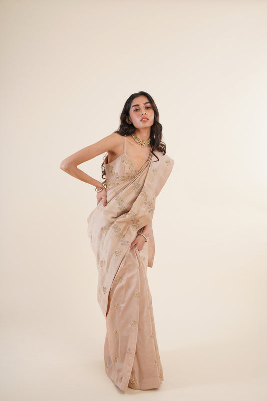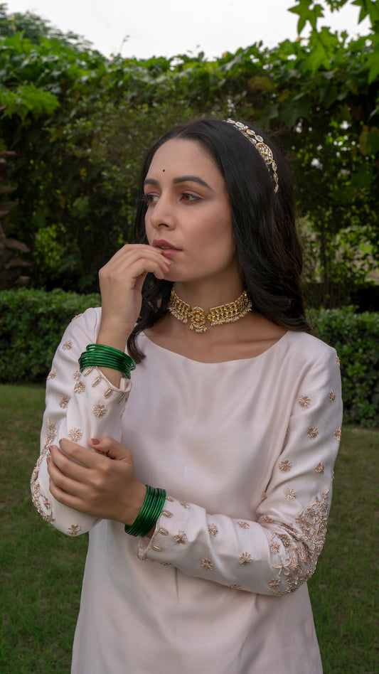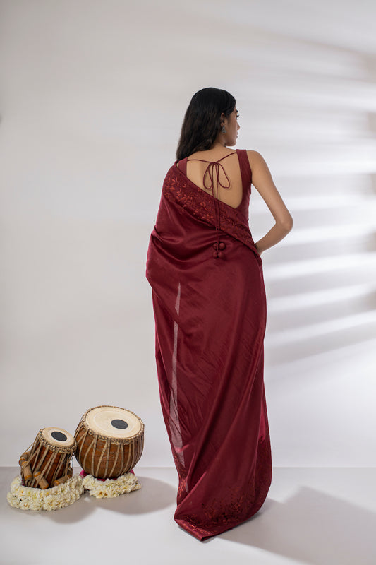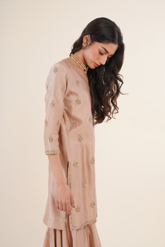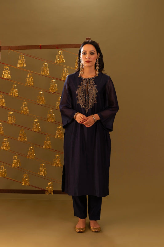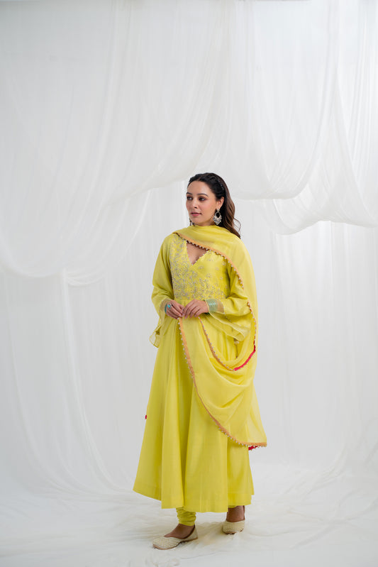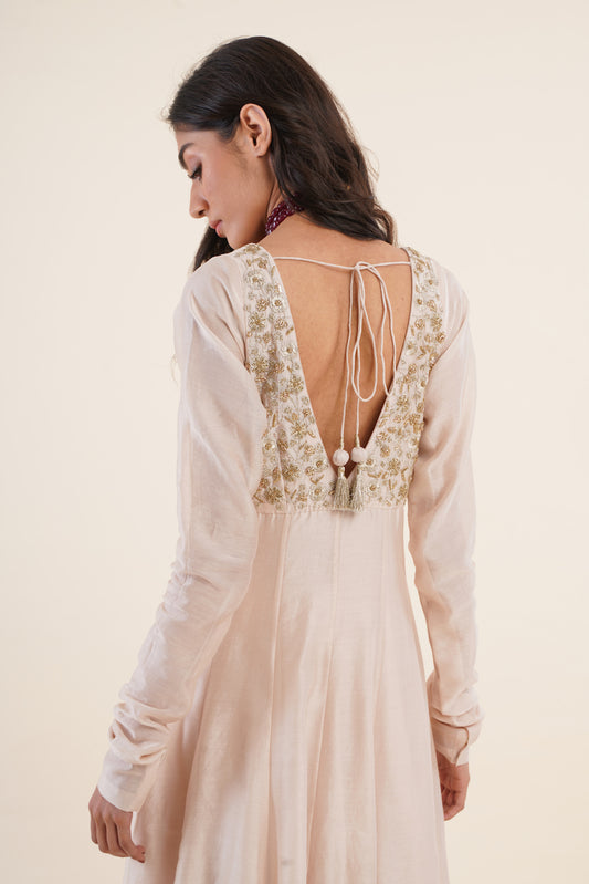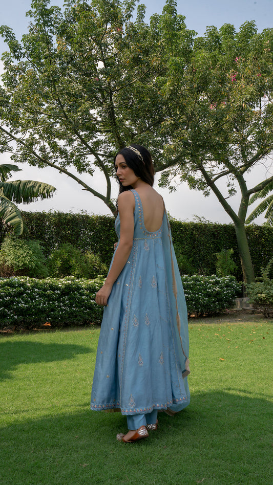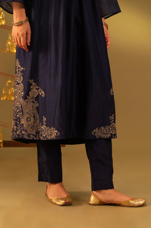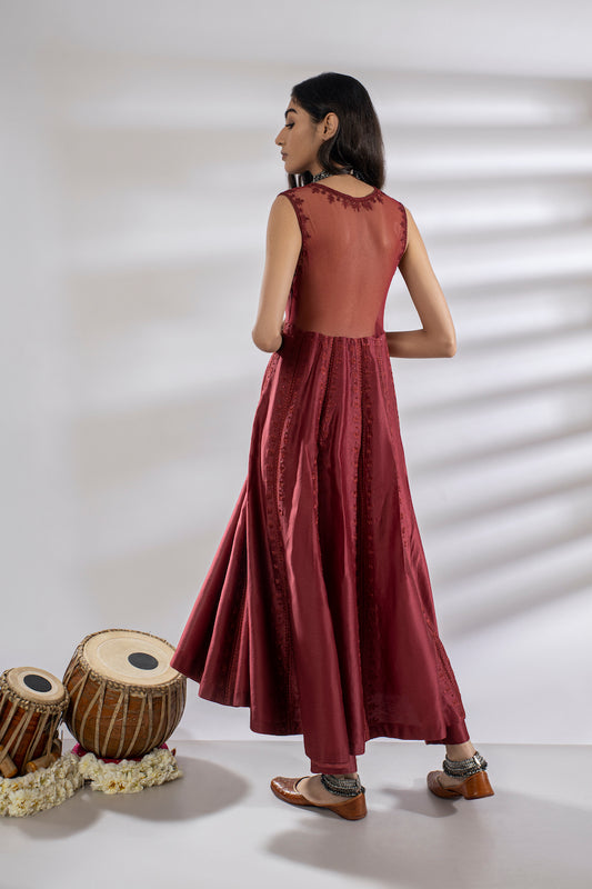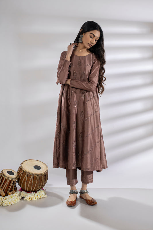 Brown Chanderi Embroidered Anarkali And Pant Set