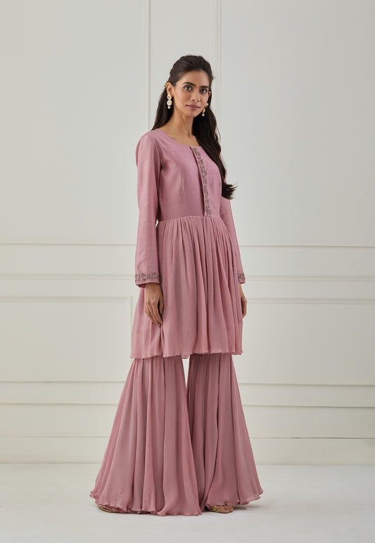 Pink Gulabo Chanderi Kurta And Sharara Set