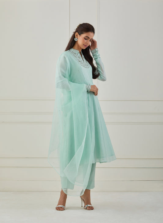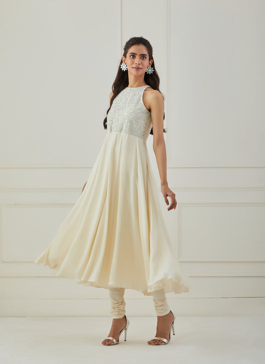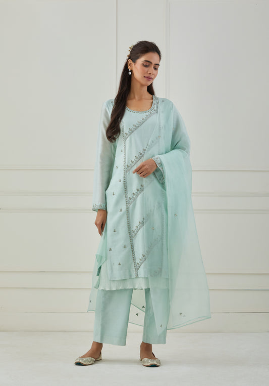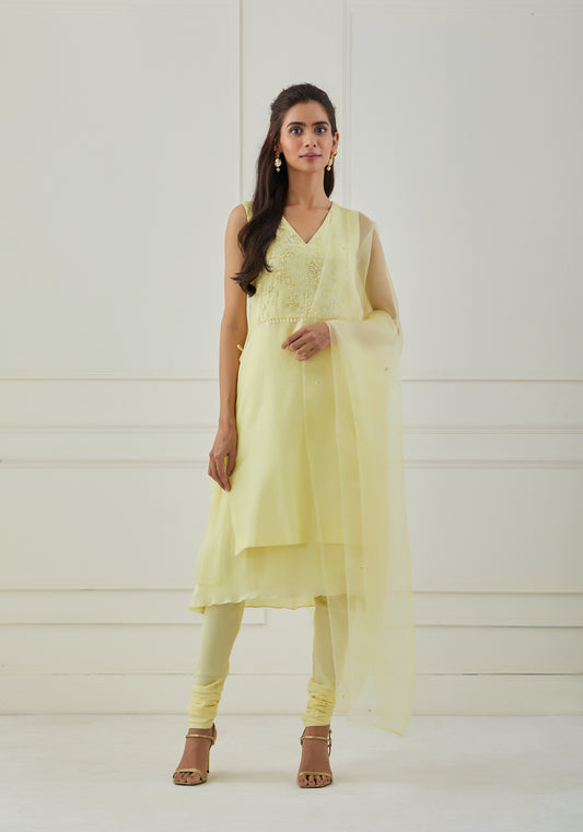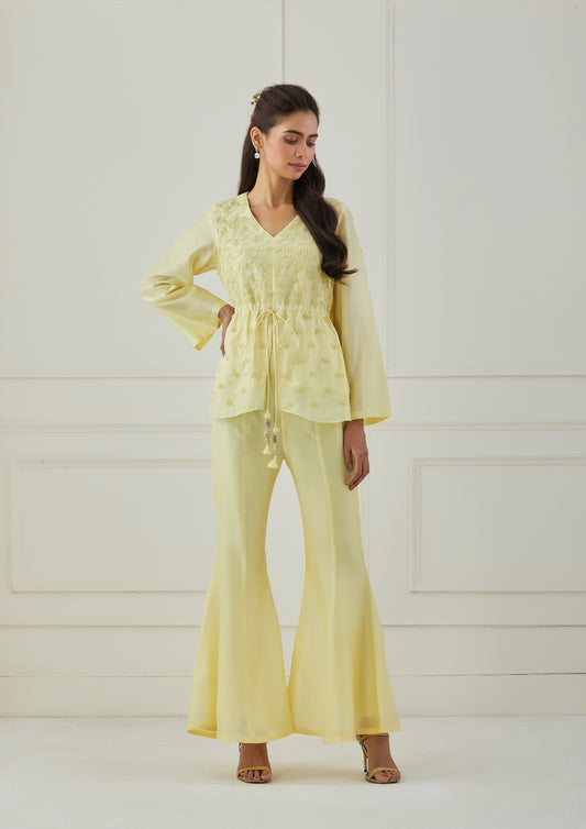 Yellow Genda Chanderi Kurta And Flared Pant Set